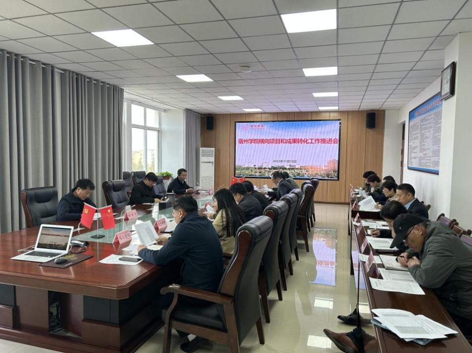 2023年11月10日上午,宿州学院横向项目和成果转化工作推进会议在逸夫楼504会议室召开。会议由院党委书记李红主持,校办公室、财务处、招就处、科研处负责人,各二级学院院长、科研副院长以及有关工作人员参加了会议。