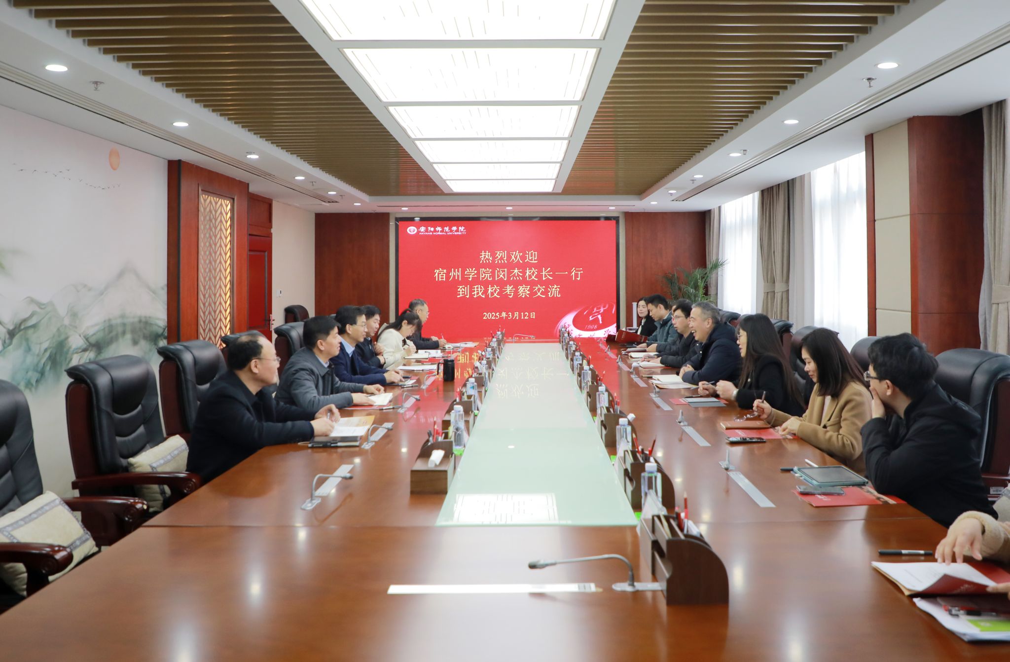 3月12日上午,我校党委副书记、校长闵杰率队赴安阳师范学院开展调研交流。我校硕士学位授权点建设相关的二级学院院长、科研处负责人及相关工作人员参加了调研。安阳师范学院校长孔国庆、副校长孙金伟,科研处、研究生处、化学化工学院、资源环境与旅游学院等单位负责人出席座谈。