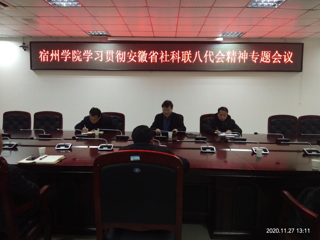 11月27日,宿州学院在逸夫楼第一会议室召开专题会议学习贯彻落实安徽省社会科学界联合会第八次代表大会精神,安徽省社会科学界联合会第八次代表大会代表、校党委委员、副校长张英彦,宿州学院社科联委员代表,二级学院院长,教务处和科技处工作人员参加本次会议。会议由张英彦主持。