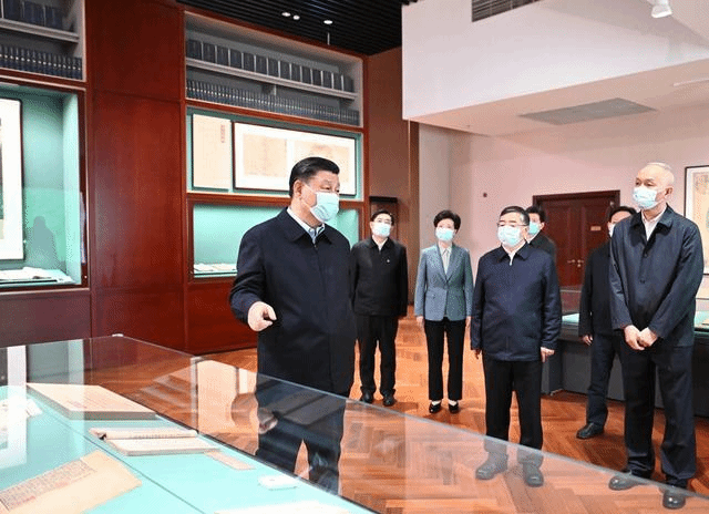 6月2日,中共中央总书记、国家主席、中央军委主席习近平在北京出席文化传承发展座谈会并发表重要讲话。这是座谈会前,习近平1日下午在中国国家版本馆考察。新华社记者 姚大伟 摄